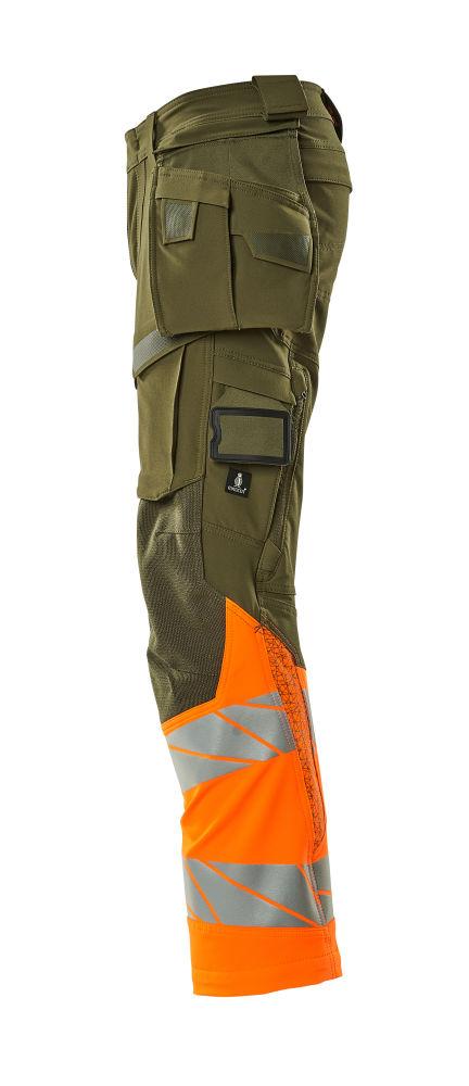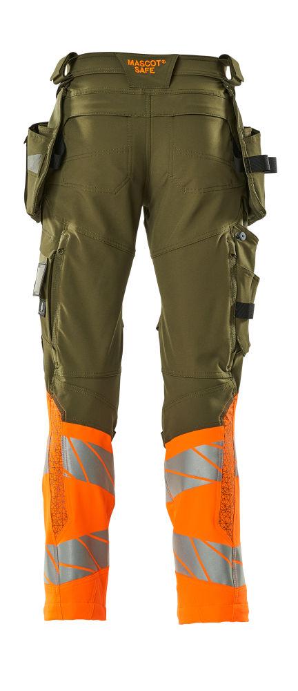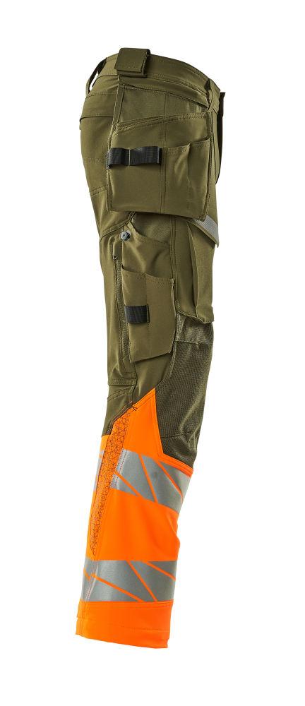 Byxor med hängfickor, mossgrön/orange