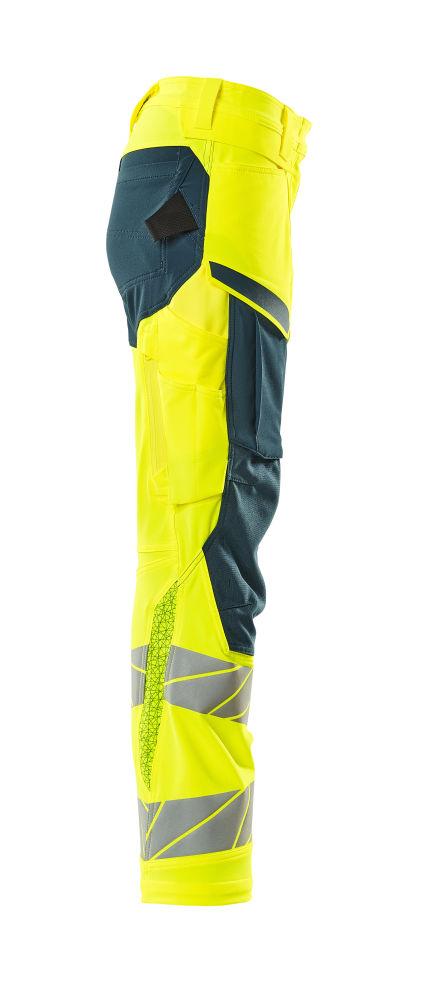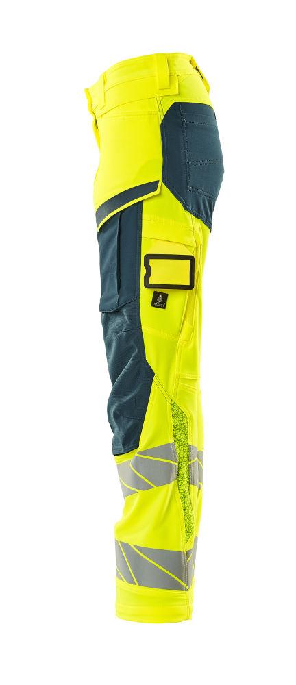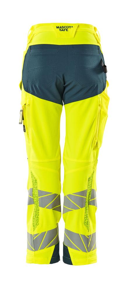 Dam byxor med knäfickor, gul/petrolium
