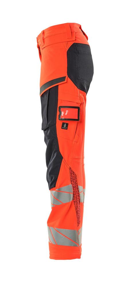 Avtagbar ID-kortshållare: Integrerad i benfickan, med dold tryckknappsstängning för extra säkerhet.