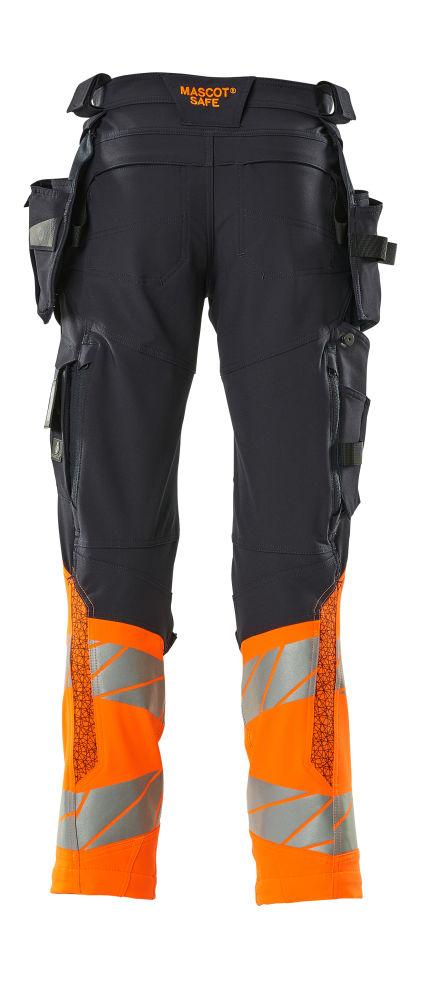 Knäfickor i tvåvägs elastisk CORDURA®: Ger fri rörlighet vid knästående arbete och möjliggör justerbar placering av knäskydden.