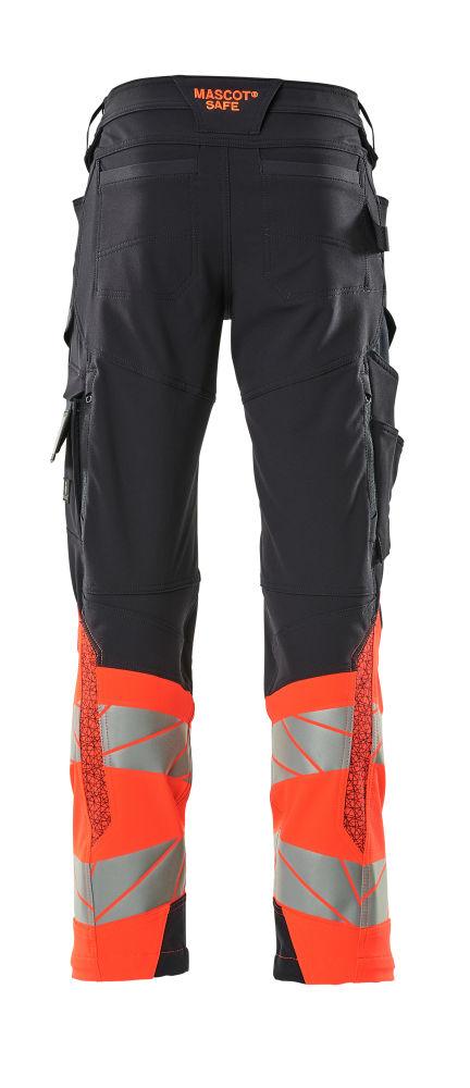 Byxor med knäfickor, mörk marin/röd