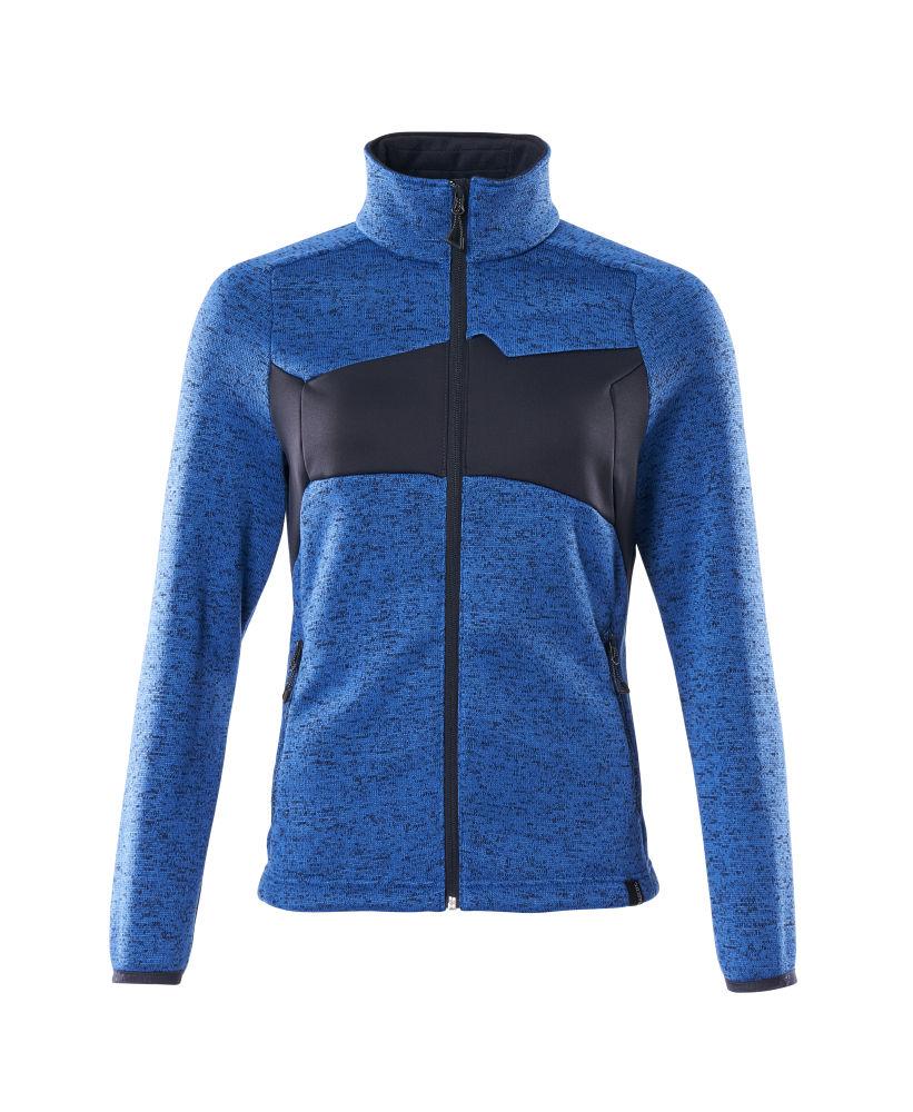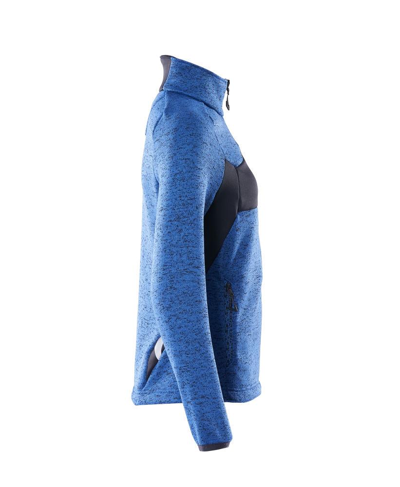 Dam stickad tröja med blixtlås, azurblå/mörk marin
