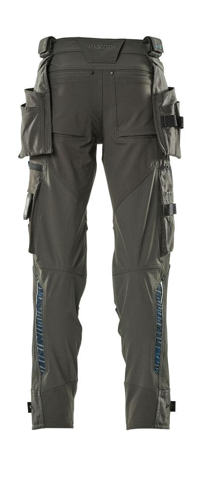 Knäskyddsfickor med Kevlar® och Dyneema®: Elastiska och extremt slitstarka knäfickor med ventilation via blixtlås. Samcertifierade för användning med MASCOT:s knäskydd av typen LONG.