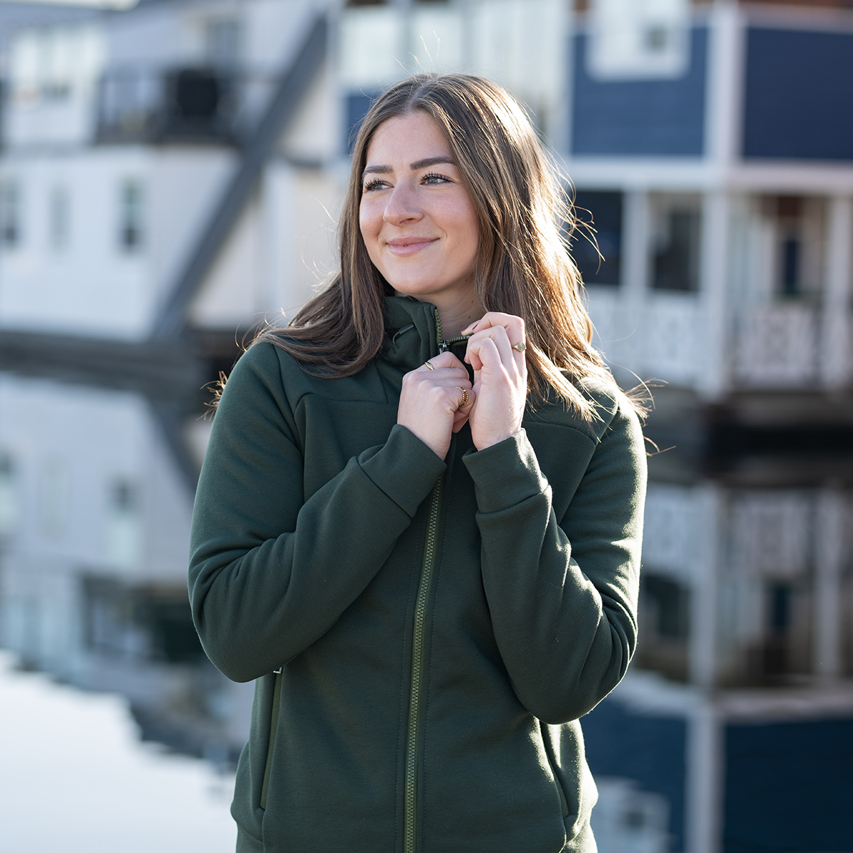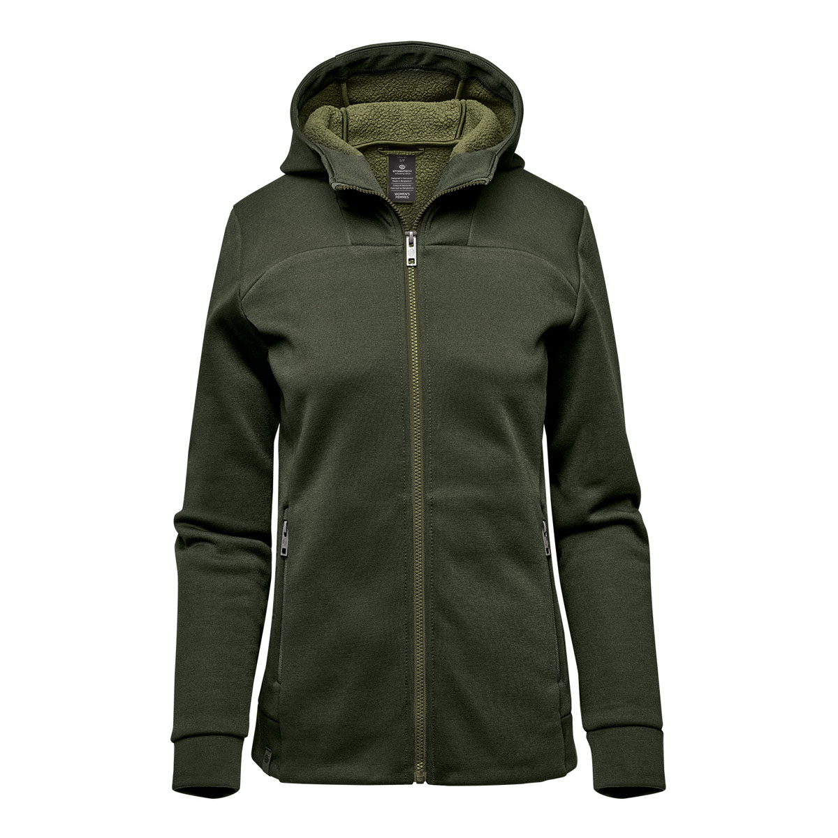 Vikt: 100 % polyesterjersey sammanfogad med 100 % återvunnen polyester sherpa fleece, 10,18 oz/yd² (USA) / 345 g/m² (CDN)